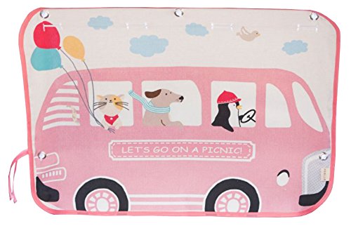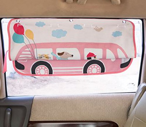 Tokkids - Tendina Parasole laterale per auto, blocca il 99% dei raggi solari, protegge gli occhi e la pelle dei bambini, dimensione regolabile, 70 * 50cm disegno Minibus rosa