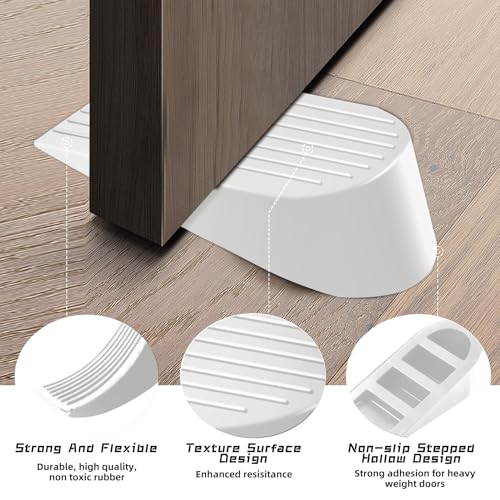 TOKPLNU Cunei per porta, confezione da 2 fermaporta extra large in gomma, resistenti, per pavimenti, antiscivolo, per patio, esterni, case, scuole, uffici, garage, bianco