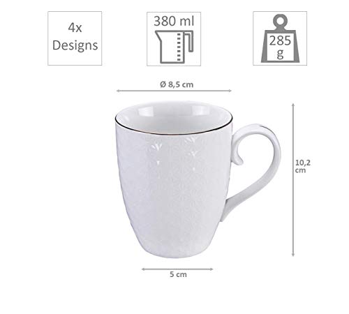 TOKYO design studio Nippon White Set di 4 Tazze Bianco, con Bordo in Oro, Ø 8,5 cm, Altezza 10,2 cm, 380 ml, Porcellana Asiatica, Design Giapponese, Confezione Regalo Inclusa.