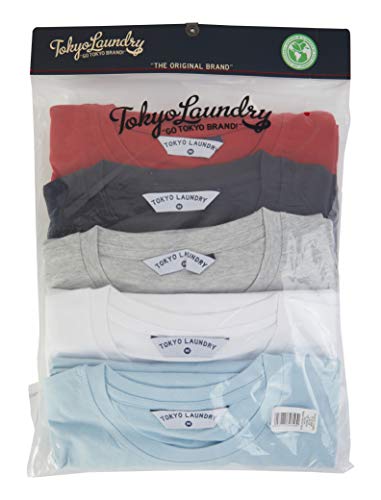 Tokyo Laundry Set di magliette da uomo in jersey di cotone, tinta unita, confezione da 5, Rosso-navy-grigio-bianco-blu, S