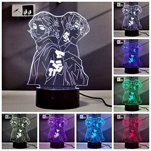 2 in 1,Tokyo Revengers,Baji,Mikey,lampada Anime LED 3D illusion, telecomando RGB a 16 colori, luce notturna per bambini per camera da letto