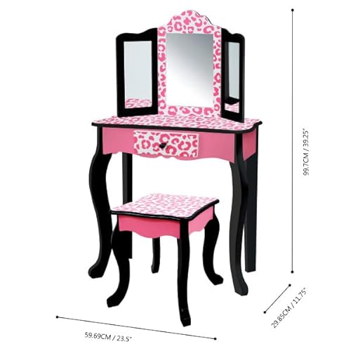 Toletta in Legno Rosa con Sgabello e Specchio per Bambini Teamson Kids TD-11670A