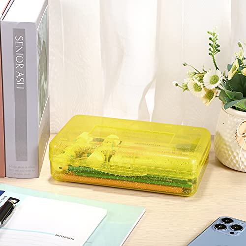 TOLIDA Scatola per matite, scatola di plastica con coperchio giallo perlato, traslucido, scatola di cancelleria per la casa e l'ufficio penne pastelli cera gomme clip