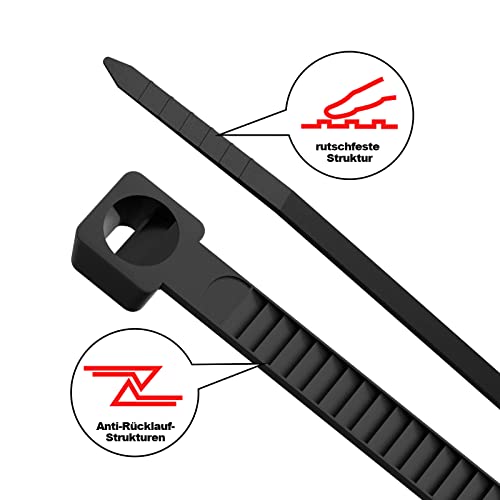 [Fascette multifunzionali] Questa cravatta nera è adatta per interni ed esterni come casa, ufficio, giardino, garage e officina. È ideale per la gestione dei cavi, il giardinaggio, il fai da te, il commercio e la costruzione. Le fascette in nylon sono ideali per organizzare cavi, collegare recinzioni da giardino, reti, fissare piante, accessori per bicicletta/auto, ecc. Risolvono effic