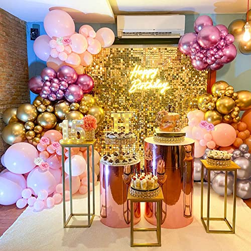 TOLOYE Kit Arco Palloncini,Ghirlanda Palloncino Compleanno Donne con Metallizzato Oro Argento Rosa Palloncini Bianco Rosa Lattice Palloncino Artificiali Fiori per Decorazioni Festa Compleanno Nuziale