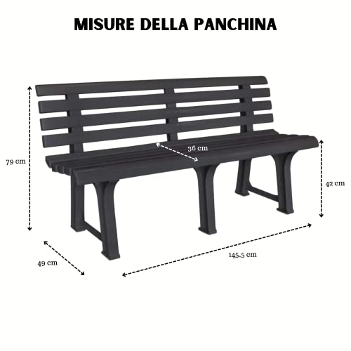 Tomaino - Panchina Da Esterno E Interno, Panchina Da Giardino In Plastica, Comoda E Resistente - 3 Posti
