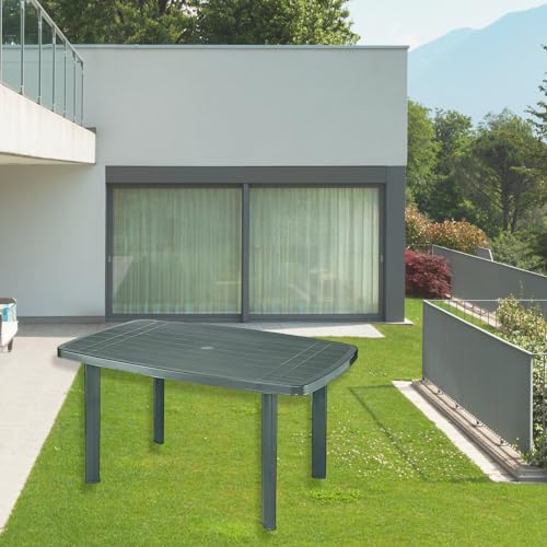 Tomaino - Tavolo Da Giardino In Plastica Rettangolare Per Esterno, Set Da Pranzo, Campeggio - Foro Ombrellone, Gambe Smontabili 137x85x72cm (verde)