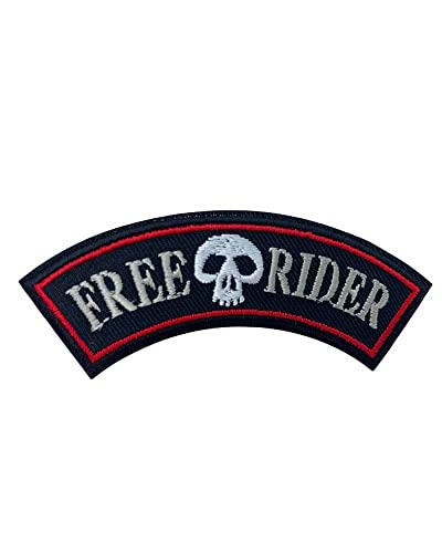 TOMASELLI MERCERIA Applicazione Patch Termoadesiva Moto Nero Ricamo Teschio Scritta Free Rider 90x25 Mm