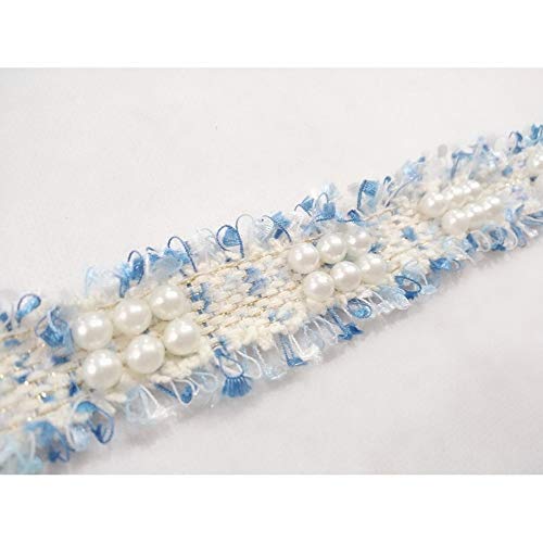 TOMASELLI MERCERIA 50 Cm Passamaneria Modello Perle Bianche Filo Lurex Alta 25 Mm - Celeste