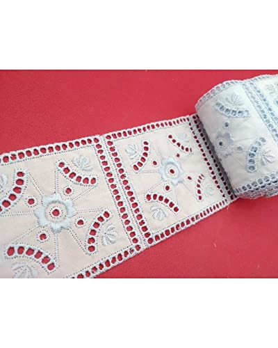 TOMASELLI MERCERIA 50 Cm Pizzo Sangallo Piastrella Quadrati Disegno Fiore Centro Alto 6 Cm 7 Pezzi - Celeste
