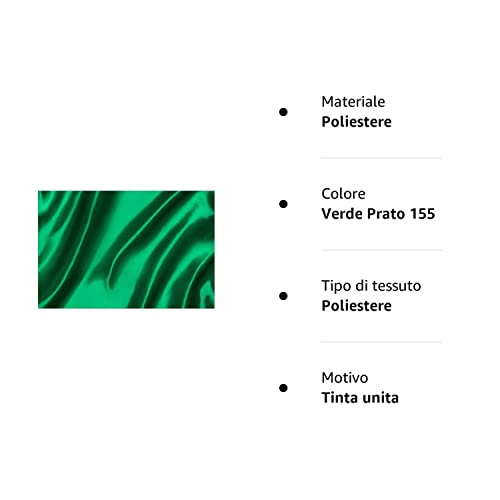 TOMASELLI MERCERIA Tessuto Raso Tinta Unita Pesante Lucido Addobbi Costume Carnevale Alto 150 Cm - Verde Prato 155