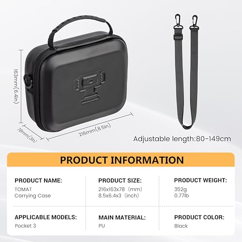 【Facile da usare e da trasportare】 La custodia rigida impermeabile Pocket 3 ha una maniglia robusta e stabile, che consente di risparmiare lavoro e di sollevarla facilmente. Il design della tracolla può essere crossbody. La custodia è molto compatta e portatile, può essere messa in una borsa a tracolla, facile da riporre e da portare in viaggio.