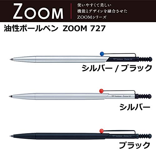 Tombow Slim Line 727 Ballpoint Pen Silver-Silver with Red Clip Ball