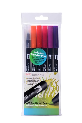 Tombow ABT - Pennarello con due punte, include punta per sfumature, confezione da 6, colori del tramonto