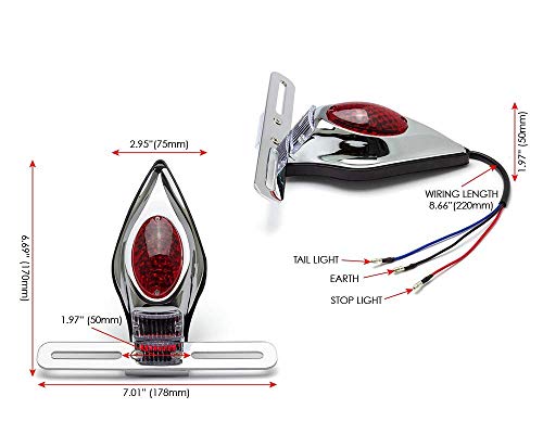 SAPERE QUESTO: Finitura: custodia in lega di metallo cromato con supporto targa e lente rosso affumicato. Fornito con supporto protettivo in gomma. Funzione 1: semaforo / funzione 2: fanale posteriore / funzione 3: luce targa