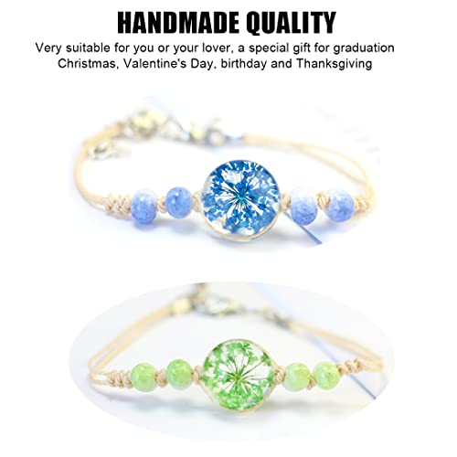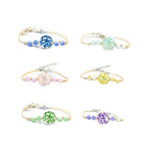 Tomedeks 6 braccialetti da donna fatti a mano con fiori secchi Gypsophila, regolabili