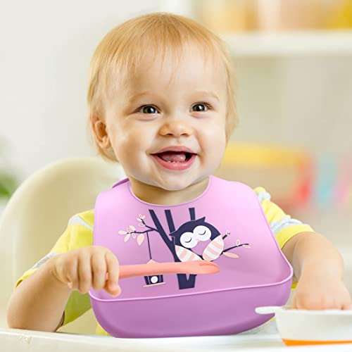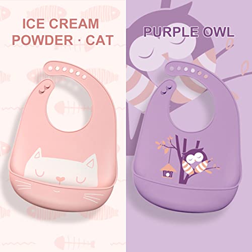 Tomedeks 2 pezzi Bavaglini in silicone per bambini, impermeabili, per lo svezzamento, con tasca per raccogliere briciole, unisex, per bambini, morbidi, facili da pulire, lavabile in lavatrice (P+P)