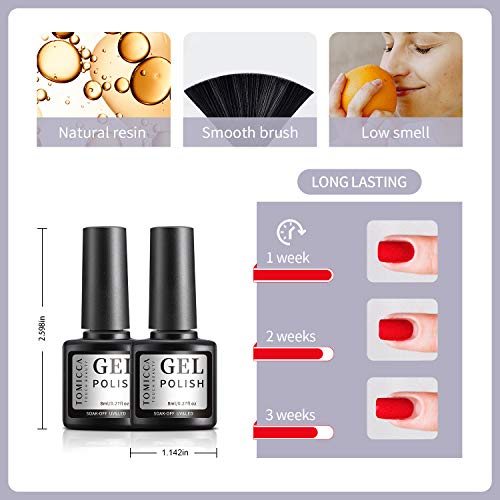 【21+ Days No Peel-off Shellac Set】:Lunga durata per 21+ giorni con una lucentezza senza pari sotto una corretta applicazione.L'effetto è migliore quando si usa il top coat TOMICCA e il top coat della stessa marca.