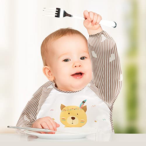 Include: 4 pezzi bavaglini impermeabili manica lunga, ideali per i bambini da 0 a 36 mesi.