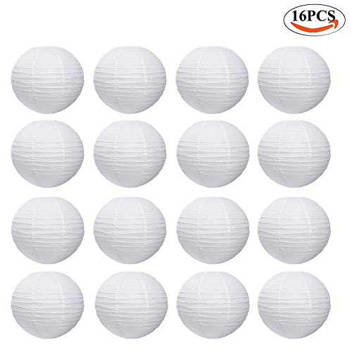 Tomkity 16 Pezzi Lanterne di Carta Rotondo Bianco di Lampada per Festa del Compleanno e Matrimonio