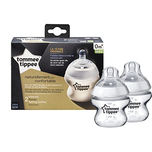 Tommee Tippee Biberon Closer to Nature, 150 ml, flusso lento 0m+, 2 pezzi, trasparente
