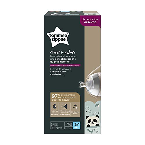 Tommee Tippee Closer to Nature Baby Bottle, Medium Flow Breast-Like Teat with Anti-Colic Valve, 340ml, Pack of 1, Pip the Panda