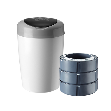 Il cestino per pannolini Simple e Sangenic di Tommee Tippee è il modo semplice, elegante e poco ingombrante per mantenere la stanza del vostro bambino pulita e inodore. Il cestino per pannolini è adatto per lo smaltimento di pannolini, batuffoli di cotone, salviettine per bambini e prodotti per l'igiene. La pellicola multistrato e l'intelligente chiusura a lembo sigillano il coperchio in tutti gli odori. La pellicola contiene un agente antibatterico che elimina il 99% di tutti i germi. Ogni confezione di ricarica è sufficiente per smaltire fino a 180 pannolini. Dettagli del prodotto: Il contenitore può contenere fino a 18 pannolini alla volta Design: bianco / grigio Pulizia: Basta pulire con acqua tiepida e sapone La pellicola multistrato intrappola tutti gli odori La pellicola contiene un agente antibatterico La pellicola multistrato e il coperchio a tenuta intelligente chiudono gli odori sgradevoli. La pellicola contiene un agente antibatterico che elimina il 99% dei germi. Ogni confezione di ricarica è sufficiente per lo smaltimento di un massimo di 180 pannolini*. *Per la misura del pannolino 1 (2-5 kg). Dettagli del prodotto: Per i più alti standard di igiene Bastano fino a 180 pannolini La pellicola contiene un agente antibatterico Uccide il 99% di tutti i germi La protezione antibatterica è attaccata alla pellicola e non ad altri componenti del prodotto. La pellicola intrappola i germi e gli odori e ne impedisce la diffusione in casa. Ambito di consegna: 1 x secchio per pannolini Sangenic Simple e 3 x cassetta a foglio