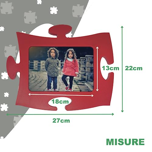 Tommy Design - Cornici Foto Multiple da Parete - Portafoto da Parete Multiplo a Forma di Puzzle - Portafoto Moderno 13x18 - Cornice Originale - Cornice per Foto Formato Puzzle Divertente - Rosso