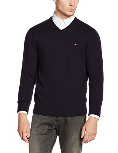 Tommy Hilfiger Pima CTN Cashmere V-NK CF Maglia, Nero (Flag Black), Medium Uomo