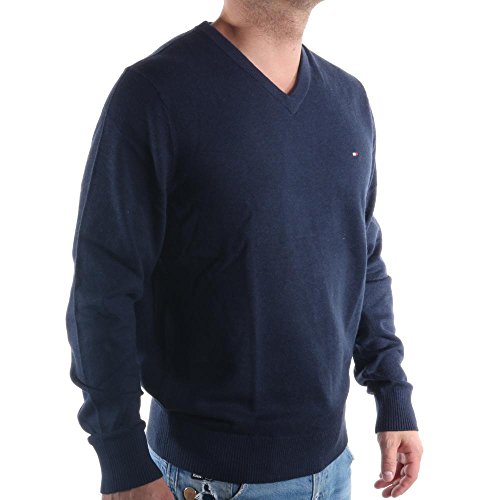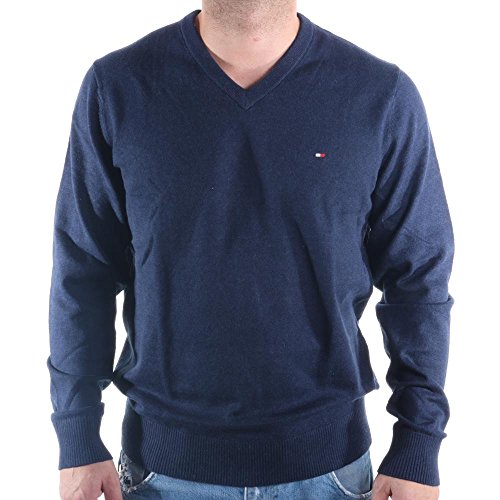 Tommy Hilfiger Pima CTN Cashmere V-NK CF Maglia, Blu (Sky Captain Heather), XX-Large Uomo