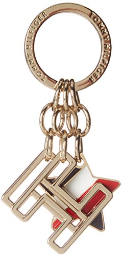 Tommy Hilfiger Logo Charm Keyfob - Portachiavi ad anello e catena Donna, Grigio (Metal Mix), 0.2x4x9 cm (B x H x T)