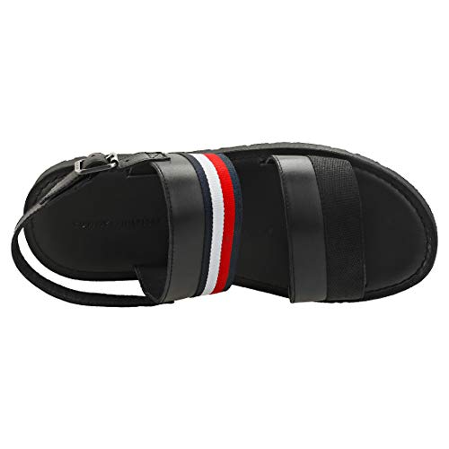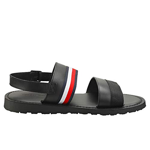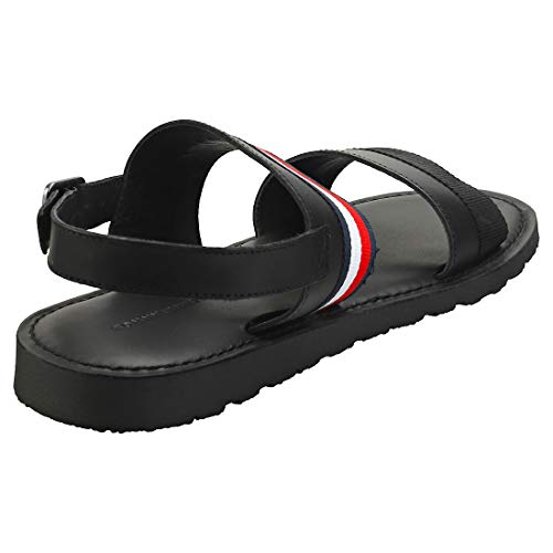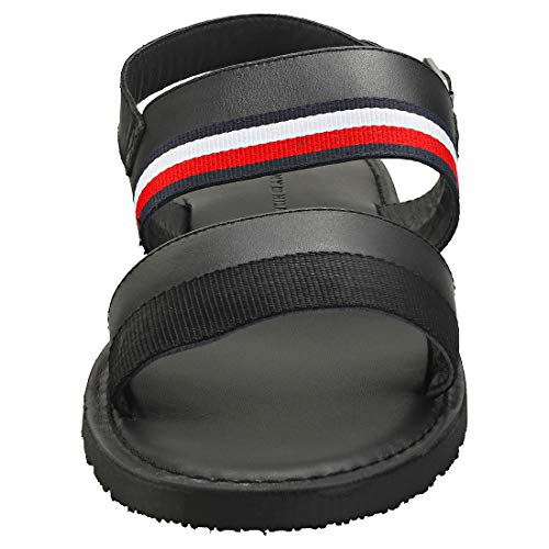 Tommy Hilfiger Corporate Strap Leather Sandal, Punta Aperta Uomo, Nero (Black Bds), 46 EU