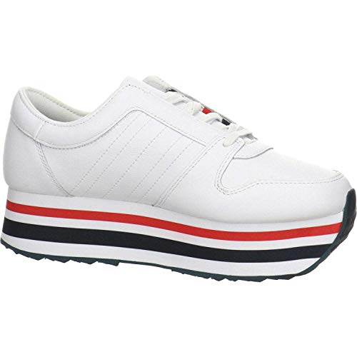TOMMY HILFIGER Scarpe da ginnastica da donna, con lacci, plateau, toppe in pelle, tinta unita, colore: bianco