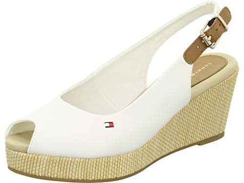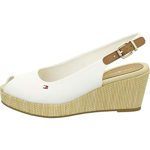 Tommy Hilfiger Espadrillas Wedge Donna Iconic Elba Sling Back Wedge Tacco a Zeppa, Bianco (Ivory), 42 EU