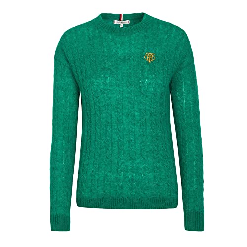 Tommy Hilfiger TH Essential Cable C-nk Swtr Felpa, Verde (Ultramarine Green Lly), Medium Donna