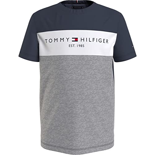 Tommy Hilfiger Essential Tee S/S T-Shirt, Light Grey Heather/Colorblock, 86 cm Bambini e Ragazzi