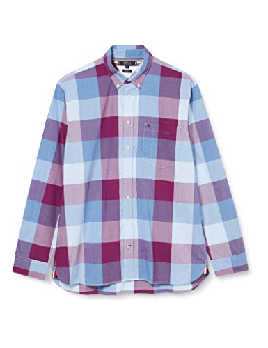 Tommy Hilfiger Flex Houndstooth Check Shirt Camicia, Primary Red/Multi, X-Small Uomo