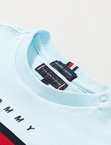 Tommy Hilfiger Flag Rib Insert Tee S/S Camicia, Frost Blue, 80 cm Bambino