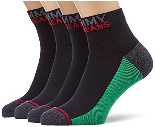 Tommy Hilfiger Tommy Jeans Quarter Socks Calzini, Green/Black, 43 Regular Unisex-Adulto