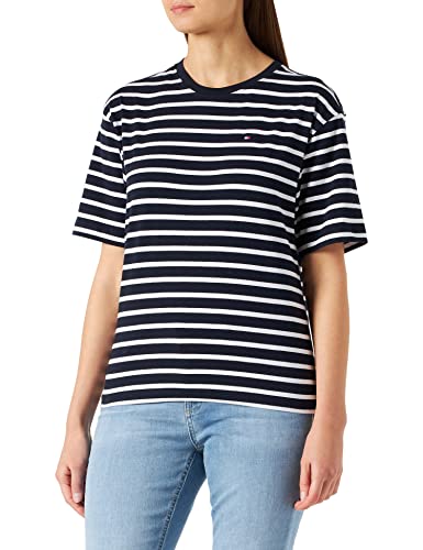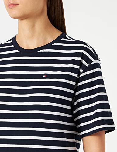 Tommy Hilfiger Maglia C-nk Rilassata Camicia, Breton STP/Desert Sky White, XS Donna
