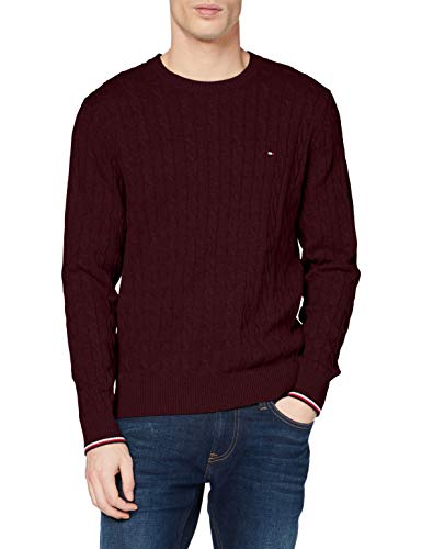 Tommy Hilfiger Organic Cotton Cable Crew Neck, Maglione, Uomo, M, Rosso Scuro (Deep Burgundy Heather)