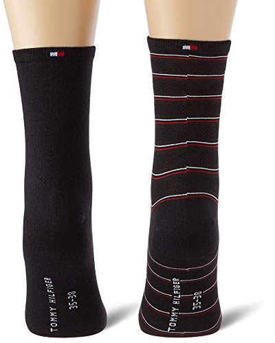 Tommy Hilfiger Preppy Women's Short Socks (2 Pack) Calzini, Nero, 39-42 Donna