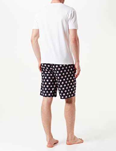 Tommy Hilfiger CN SS Short Woven Set Pigiama, White/Offset Stars, S Uomo