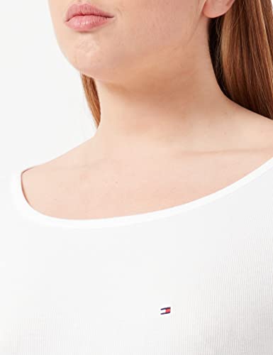 Tommy Hilfiger Skinny Modal Rib Boat-nk Top LS Camicia, Ecru, XXL Donna