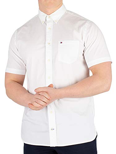 Tommy Hilfiger Stretch Poplin Shirt S/s Camicia, Bianco (Bright White 100), 46 (Taglia Produttore: Medium) Uomo