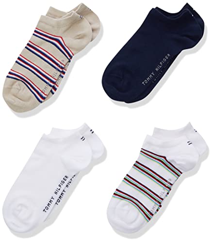 Tommy Hilfiger unisex-child Multicolor Stripe 4 Pack Sneaker, white/sand/navy, 31-34 (4er Pack)