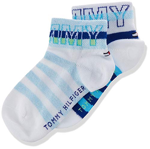 Tommy Hilfiger Tommy Wording Kids Quarter Socks (2 Pack) Calzini, Blue Combo, 35-38 Bambino