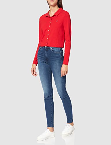 Tommy Jeans TJW Button Through Polo LS, Deep Crimson, M Donna