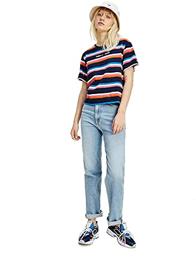 Tommy Jeans Tjw Bxy-Maglietta Corta a Righe T-Shirt, Twilight Navy/Multi, L Donna
