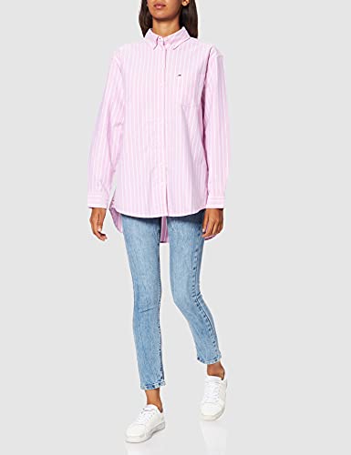Tommy Jeans Tjw Camicia a Righe rilassate, Vivid Fuchsia/Multi, XS Donna